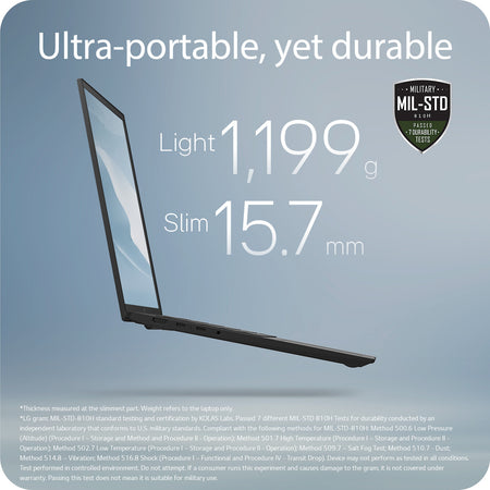 - Ultra-portable, ultra-durable - You’ll be surprised how our gram thrives under pressure. Its tough endurance is proven by rigorous military standard tests (MIL-STD 810H). Designed with finesse, to endure.