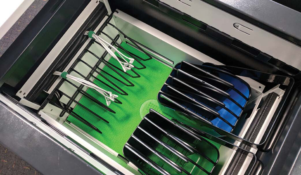 Need to fit larger devices in your Carrier Cart? Install the LocknCharge Stainless Steel Device Rack and expand the device compatibility to large Chromebooks, MacBooks and Laptops.