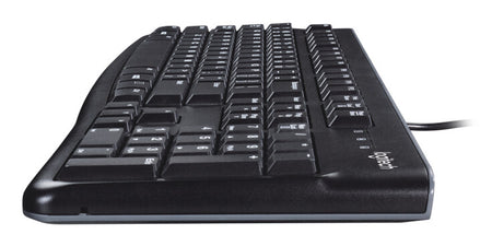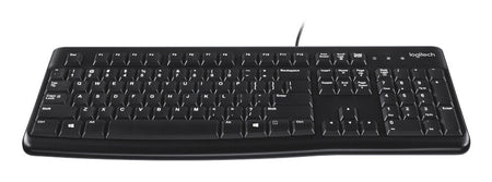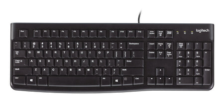 The USB wired Logitech® Keyboard K120 delivers a typing experience built to last in school settings. Students enjoy comfortable keys, a standard and familiar layout with full-size F keys and a number pad. Durable keys last up to 10 million keystrokes. The silicone cover tightly wraps the keyboard and is tested to withstand frequent cleaning and disinfecting per CDC guidelines for safe, shared use. Bold, bright white characters ensure all students—even those with less-than-perfect vision—can easily read them. Students can adjust the sturdy yet flexible legs to position the keyboard to meet their individual ergonomic needs. Works with Windows devices. [1,2]