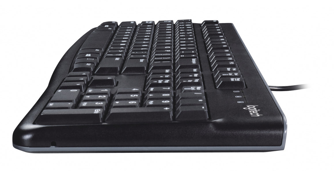 The Keyboard K120 for Business is the budget-friendly keyboard that's built to last. You'll enjoy a comfortable and quiet typing experience thanks to the low-profile keys that barely make a sound and standard layout with full-size F-keys and number pad. With its thin profile, spill-resistant design,* durable keys that can withstand up to 10 million keystrokes** and sturdy, adjustable tilt legs, this sleek keyboard not only looks and feels good-it's built to last. A plug-and-play USB connection means no software installation or IT hassles. Bold, bright white characters make the keys easier to read. And it all comes with the high quality and reliability that's made Logitech the global leader for keyboards and mice.