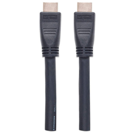 HDMI has become the standard digital connection, delivering the highest-quality audio and video signal over a single cable. Manhattan CL3 High Speed HDMI Cables are rated for in-wall installation and feature an abrasion-resistant design, a sturdy yet flexible PVC jacket and gold-plated contacts. Created to meet the evolving needs of the high-definition marketplace and fire protection standards, this cable provides the highest resolution possible at 4K x 2K, an audio return channel and a bandwidth of 10.2 Gbps at 340 MHz. These high-quality cables deliver high-definition video and multichannel, digital audio with increased performance characteristics and greater accuracy. With it's fully tested high specifications and in-wall fire rating, the Manhattan CL3 High Speed HDMI Cable will future-proof your Audio/Video project for years to come.