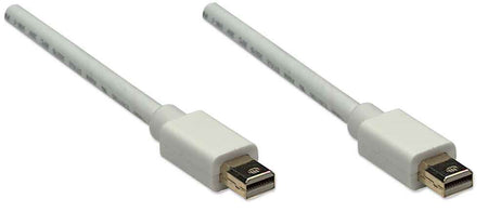 Manhattan Mini DisplayPort cables deliver both high-definition digital audio and video signals between desktop or notebook computers and an output device. The 20-pin connector is small and compact but offers 14.8 Gbps bandwidth, Deep colour and 24-bit, 8-channel uncompressed audio capability. It's ideal for use with DisplayPort-equipped computers, flat-panel displays, slim-profile devices and many consumer electronics including Blu-ray players and game consoles. Full foil and braided shielding, moulded boots with strain relief, protective PVC jackets and gold-plated connections ensure that Manhattan DisplayPort Cables provide maximum conductivity and clear, crisp signal transmissions with reduced EMI interference and distortion.