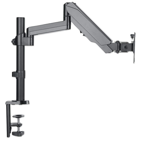 The Manhattan Universal Gas Spring Monitor Mount securely supports one 17" to 32" TV or monitor. Because it uses a gas spring to hold your display, its arm only needs the lightest touch to move your screen to the best viewing angle for you. The mount's high-quality aluminium and steel construction will provide years of reliable service. Ideal for installation on a large desk, the Manhattan Universal Gas Spring Monitor Mount lets you take advantage of the extra range of movement so you can have more space to get work done.