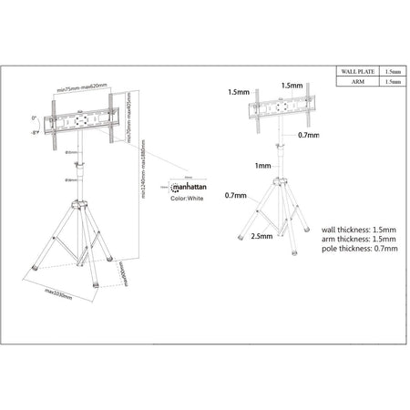 Overcome odd floor plans, annoying glare and awkward furniture placements that diminish flat-panel TV experiences. Manhattan TV Wall Mounts and Carts achieve optimal viewing angles from almost anywhere in the room. VESA compliance and construction from quality materials allow Manhattan TV Wall Mounts and Carts to fit a range of display sizes for a secure and confident above-the-floor installation. _x000D_