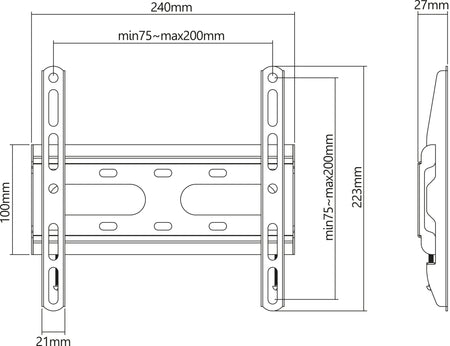 When viewing locations and TV heights are fixed at optimal positions, the Manhattan Low-Profile Fixed TV Wall Mount creates a nearly flush, close-to-the-wall installation that enhances the thin, modern TV silhouette. With this mount, your TV sits only 27 mm (1 in.) from the wall. Constructed of high-quality, powder-coated steel, it fits flat and curved LCD, LED or plasma TVs up to 43"" and weighing up to 45 kg (100 lbs.). It offers VESA compliance up to 200x200, and it's great for residential, office, hospitality, classroom, conference room, digital signage and other commercial applications.