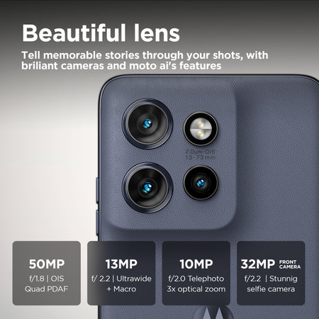 Introducing the motorola edge 50 neo, effortless creativity in a more compact size. With a minimalist design and premium materials, it’s the essence of sophistication. Helping you tell beautiful stories through next-level photos and videos powered by moto ai. Viewing, editing and sharing them in cinematic quality on a 6.36" Super HD (1220p) pOLED display. Letting you fuel up fast and keep creating thanks to 68 W TurboPower™ charging. And giving you breathtaking performance today, while delivering five OS upgrades as well as security updates until 2029. This is the motorola edge 50 neo. More than a phone. It’s a work of art.