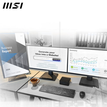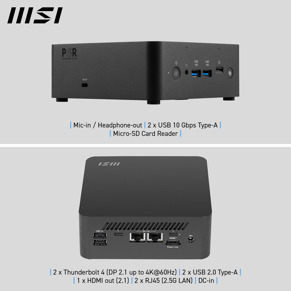 The MSI Cubi NUC AI+ 2MG i7 258V FS 32GB 1TB W11PP is a small yet powerful Copilot+ PC with an incredibly compact 0.826L design suitable for commercial office work or use as a home-theatre/entertainment PC (supports UHD/4K 60Hz display output & triple-monitor setups).