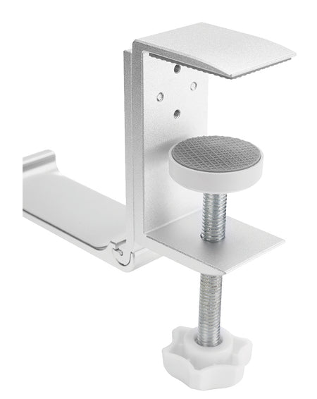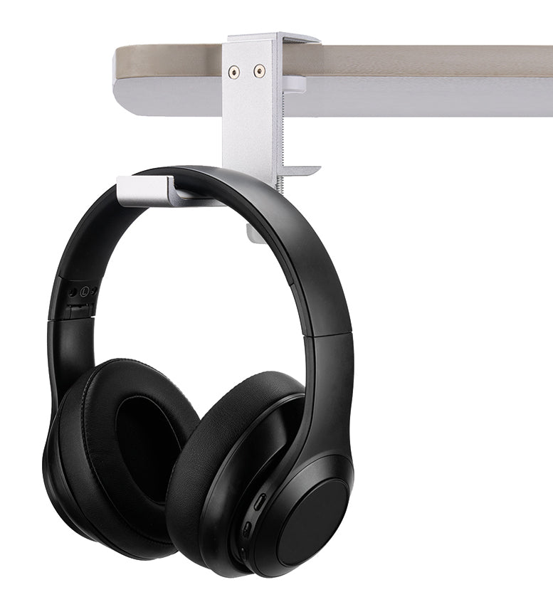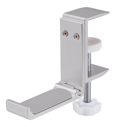 Keep your headphones within easy reach and your desk clutter-free with the practical ADS11-171SL clamp-on headset holder. Designed for maximum convenience, it securely clamps to the edge of your desk without the need for any tools. A silicone anti-slip pad provides gentle support for your headset, preventing scratches and damage. Perfect for both home and professional setups, this headset holder combines practical convenience with smart space-saving design.