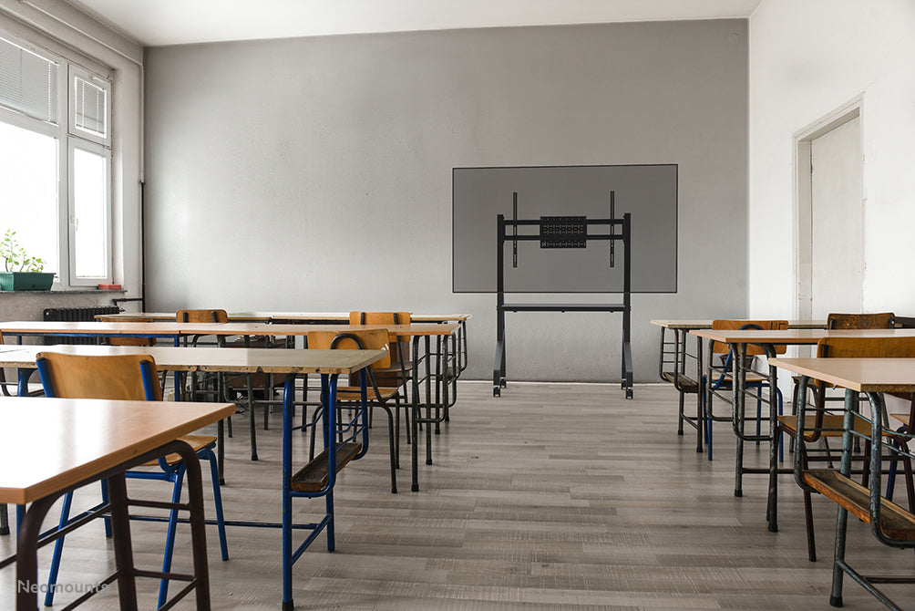 The Neomounts FL50-525BL1 MOVE Go is a mobile floor stand for flat screens up to 86" with a maximum weight capacity of 76 kg. Due to the sturdy design and the included touch screen stabilizers, the MOVE Go is a perfect solution for touch screens. The floor stand is manually adjustable in 4 preset height positions, ranging from 106 to 136 cm.