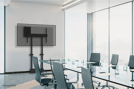 The Neomounts WL55-875BL1 MOVE Lift is a wall mount for displays up to 100" with a maximum weight capacity of 110 kg. The mount has 65 cm motorized height adjustment (35 mm/second), is operated with a wired remote control and features an anti-collision system for extra safety. A lockable, ventilated hardware compartment with cable opening is included and optional for installation.