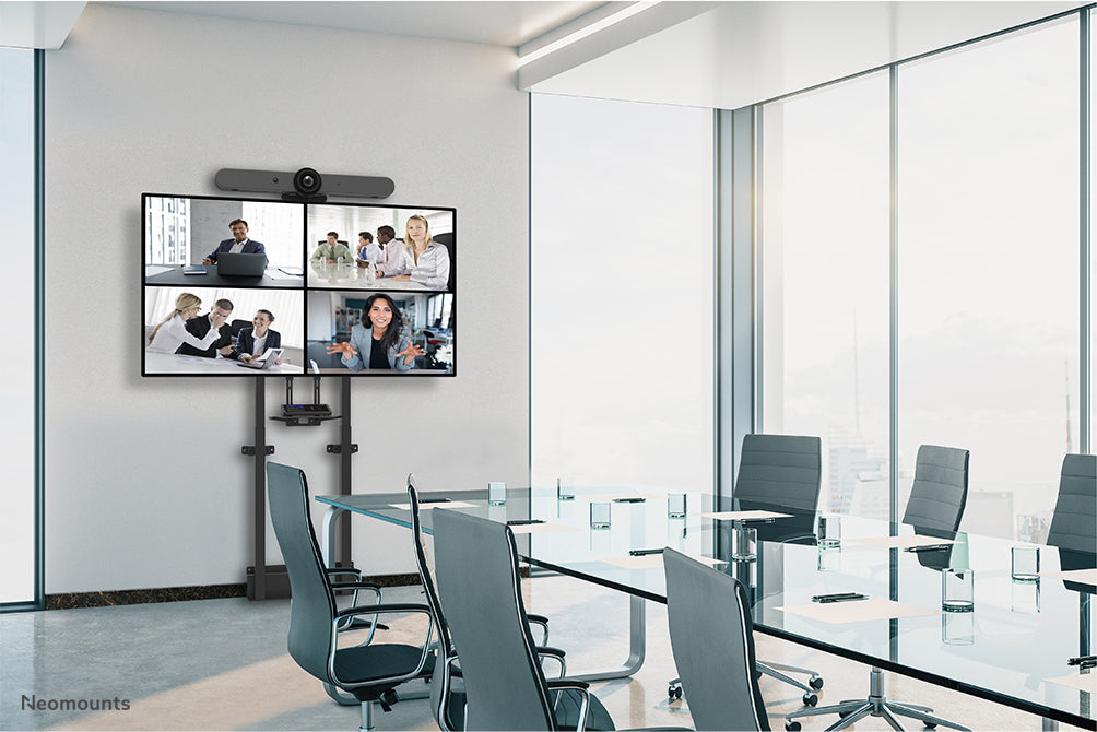 The universal AFL-875BL1 and AV1-875BL videobar & multimedia kits are optionally available and enable the installation of a separate cam shelf and multimedia device shelf to the trolley. Included to the kits are an adapter for respectively the Logitech Rally Bar (Mini) or Bose Professional VB-S/VB1. Various other accessories are also available for the MOVE Lift series, such as the ADM-875BL2 dual screen adapter or the practical AFP-875BL floor plate.