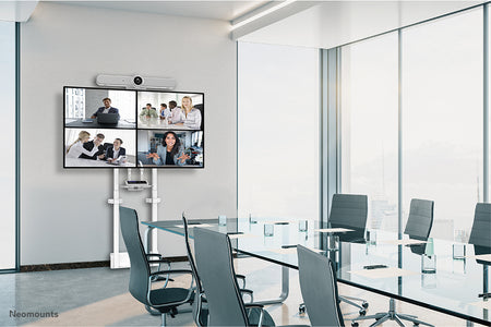 The universal AFL-875WH1 and AV1-875BL videobar & multimedia kits are optionally available and enable the installation of a separate cam shelf and multimedia device shelf to the trolley. Included to the kits are an adapter for respectively the Logitech Rally Bar (Mini) or Bose Professional VB-S/VB1. Various other accessories are also available for the MOVE Lift series, such as the ADM-875BL2 dual screen adapter or the practical AFP-875BL floor plate.