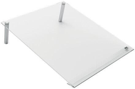 This home office whiteboard angled notepad with modern frameless contemporary design is perfect for making notes, capturing thoughts, ideas or key dates. The clear acrylic mini whiteboard notepad is angled using stylish through mounts to give the optimal writing position. It fits neatly onto any desk or worksurface and with the transparent design the memo board blends seamlessly into the background when not in use. The transparent acrylic dry erase surface can easily be wiped clean so simply write, wipe away and start afresh. Supplied with a whiteboard pen. Size A4.