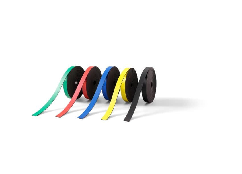 Magnetic tape is ideal for visualising projects, processes and timescales quickly and easily on steel planning boards. Simply cut the tape to size with scissors before adding a name or reference with a marker pen. Colour Black. Size: 10x5000mm
