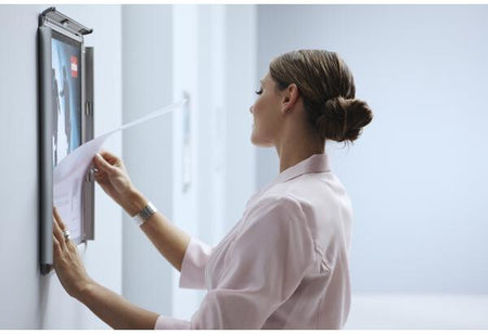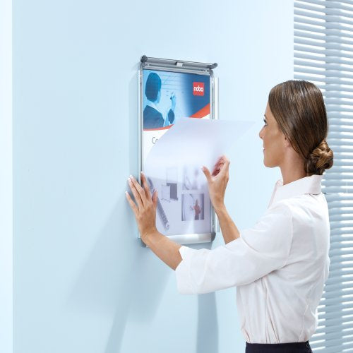 This basic A0 poster frame is ideal for securely displaying notices, posters, advertisements and important information in offices, schools and high traffic areas. Bordered by an aluminium 25mm trim, the display frame features a snap-open and snap-close design allowing for quick and easy hassle-free document changes - ideal for both temporary or permanent displays. The sign holder is easy to mount and comes with a complete mounting kit. Screws are concealed behind the trim for a clean finish, and the frame can be used in portrait or landscape format. An anti-glare polypropylene cover protects your document from dirt and moisture while keeping it clearly visible. The non-reflective surface is also easy to wipe clean, ensuring your message always looks its best. A0 poster frame size. Be clear with Nobo.