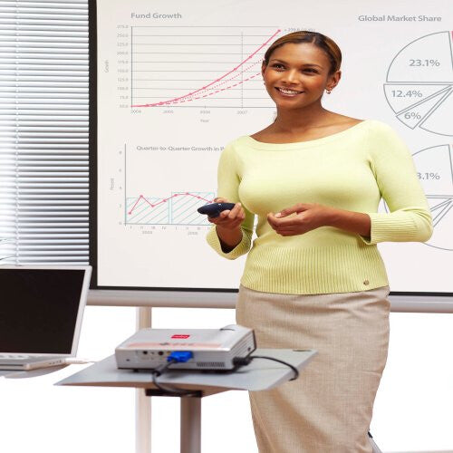Flexible tripod projector screens. The brilliant matt white surface with black border provides a sharp, detailed image that can be easily viewed by everyone in the audience. The screen can be easily retracted into its housing to protect from damage. 1750x1325mm.