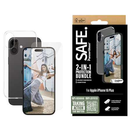 Are you in love with your preloved phone? I mean heart-pounding-can’t-live-without-you in love? Then this 2-in-1 protection combo from SAFE. by PanzerGlass® comes to the rescue. The combo features a screen protector made of 60% recycled material and a soft, transparent TPU case made of 100% recycled plastic, keeping your precious phone SAFE. from pocket plunges, dance floor mishaps, selfies gone wrong, and your everyday fumbling, dropping and screen cracking.