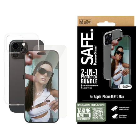 Are you in love with your preloved phone? I mean heart-pounding-can’t-live-without-you in love? Then this 2-in-1 protection combo from SAFE. by PanzerGlass® comes to the rescue. The combo features a screen protector made of 60% recycled material and a soft, transparent TPU case made of 100% recycled plastic, keeping your precious phone SAFE. from pocket plunges, dance floor mishaps, selfies gone wrong, and your everyday fumbling, dropping and screen cracking.