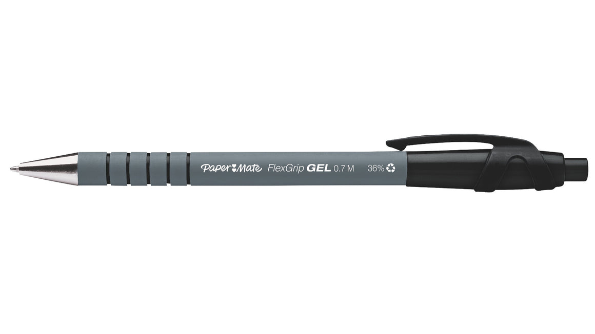 The Paper Mate FlexGrip Retractable Gel Pen delivers smooth, comfortable writing in a sleek and convenient design, with bright gel ink that ensures your words are perfectly captured in every note and to-do list. Featuring a rubberised barrel and a textured grip, this retractable pen provides exceptional comfort and control, even during extended writing sessions. The retractable design deploys and retracts the tip with a simple click, while the metal nosecone provides a premium look and feel. Ideal for home, office, and school use, this pen features a versatile 0.7 mm medium point that handles a wide variety of writing tasks. A handy clip allows you to fasten the pen to a pocket planner or notebook for easy storage and transportation. Available in black, blue, red, and green ink colours. Paper Mate pens - the reliable everyday writing companion you can count on.