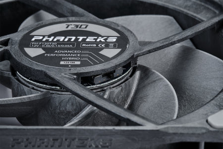 The Phanteks T30-120 fan has undergone years of development and extensive testing in close collaboration with SUNON, a leading fan manufacturer. Combined with Phanteks’ expertise in chassis and air/water cooler design, we created the ultimate PC cooling fan. The T30-120 features the best aerodynamic blade design, 30mm thick frame, and is made from quality industrial-grade components to achieve a perfect balance between high cooling performance, low noise operation, and excellent sound quality.