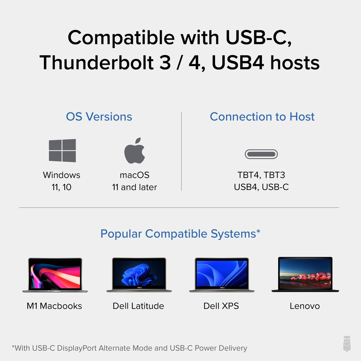 Not all USB-C ports offer DP Alt Mode or PD charging. Having a fully compatible USB-C, USB4, Thunderbolt 3, or Thunderbolt 4 port is required for this docking station, it will not work properly when adapted to USB 3.0. The UD-ULTC4K supports Windows 11, 10, 8.x, and 7, ChromeOS 100+, and macOS 10.14+. Linux, and some older macOS versions are not supported.