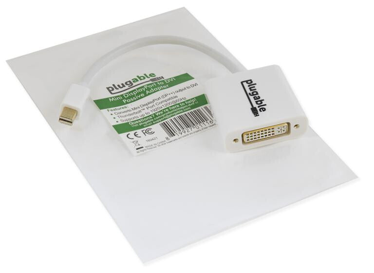 Plugable's Mini DisplayPort to DVI passive adapter (MDPM-DVIF) allows you to connect from a Thunderbolt 2 or Mini Dual-Mode DisplayPort (DP++) output on your laptop, desktop, or tablet to virtually any DVI-enabled display.