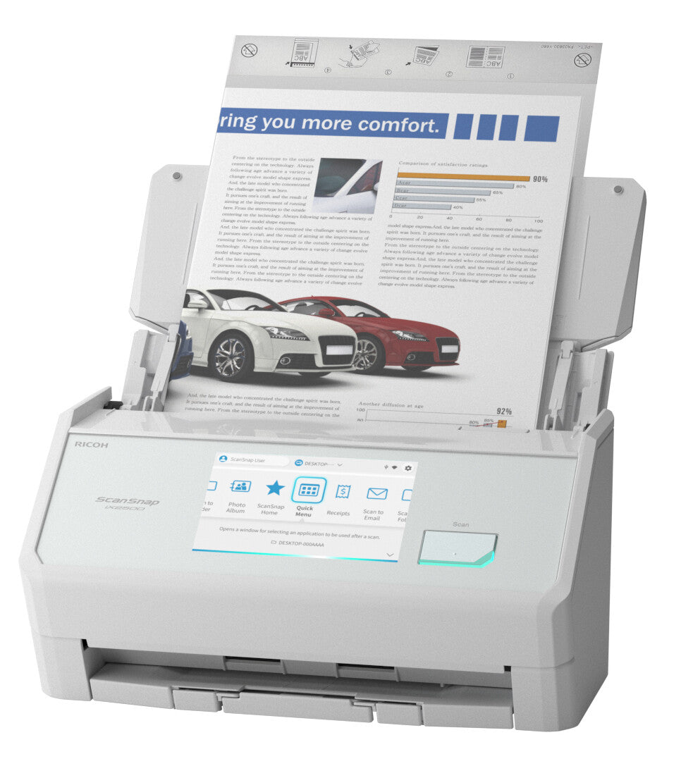 The iX2500 features a 5-inch capacitive LCD screen with popular ScanSnap design elements including one touch scan for a simple scanning process.