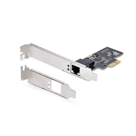 The network interface card connects via an available x1 PCI Express 2.0 (or higher) expansion slot. The card ships in a standard profile bracket and includes a low-profile bracket for installation into small form factor systems and servers. This Ethernet NIC card is compatible with Windows, Windows Server, and Linux.