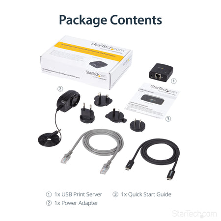 This palm-sized print server makes it easy to share a USB printer with users on your network. It’s the ideal solution for home or small office networks.
