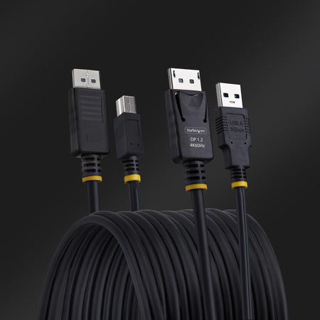 Combine a DisplayPort 4K 60Hz and one USB 5Gbps connection into a single cable for connecting a computer to a KVM Switch