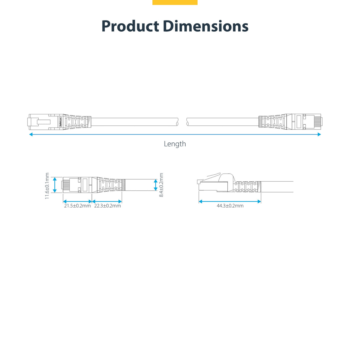 The Cat8 Ethernet Cable features snagless 50-micro gold-plated connectors that enable a precise fit to minimize wear and are rated beyond 750 connector mating cycles. The flexible Low Smoke Zero Halogen (LSZH) flame-retardant jacket emits low smoke and toxic fumes when exposed to extreme heat or in the event of a fire. This enables safer installations in poorly-ventilated areas including some industrial settings, self-contained environments such as trains and aircraft, as well as residential settings where compliance with building codes must be considered.