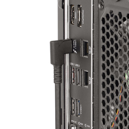 Connect USB 10 Gbps source and peripheral devices, using this 1.6ft (50cm) Rugged Right Angle USB Type-C Cable. Position the right angle USB-C connection along the device to reduce cable clutter and avoid prolonged strain from bending.