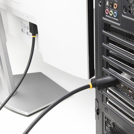 This DP 2.1 Cable is constructed with braided aluminum mylar shielding to minimize EMI for clear, consistent audio/video output and long-term reliable performance.