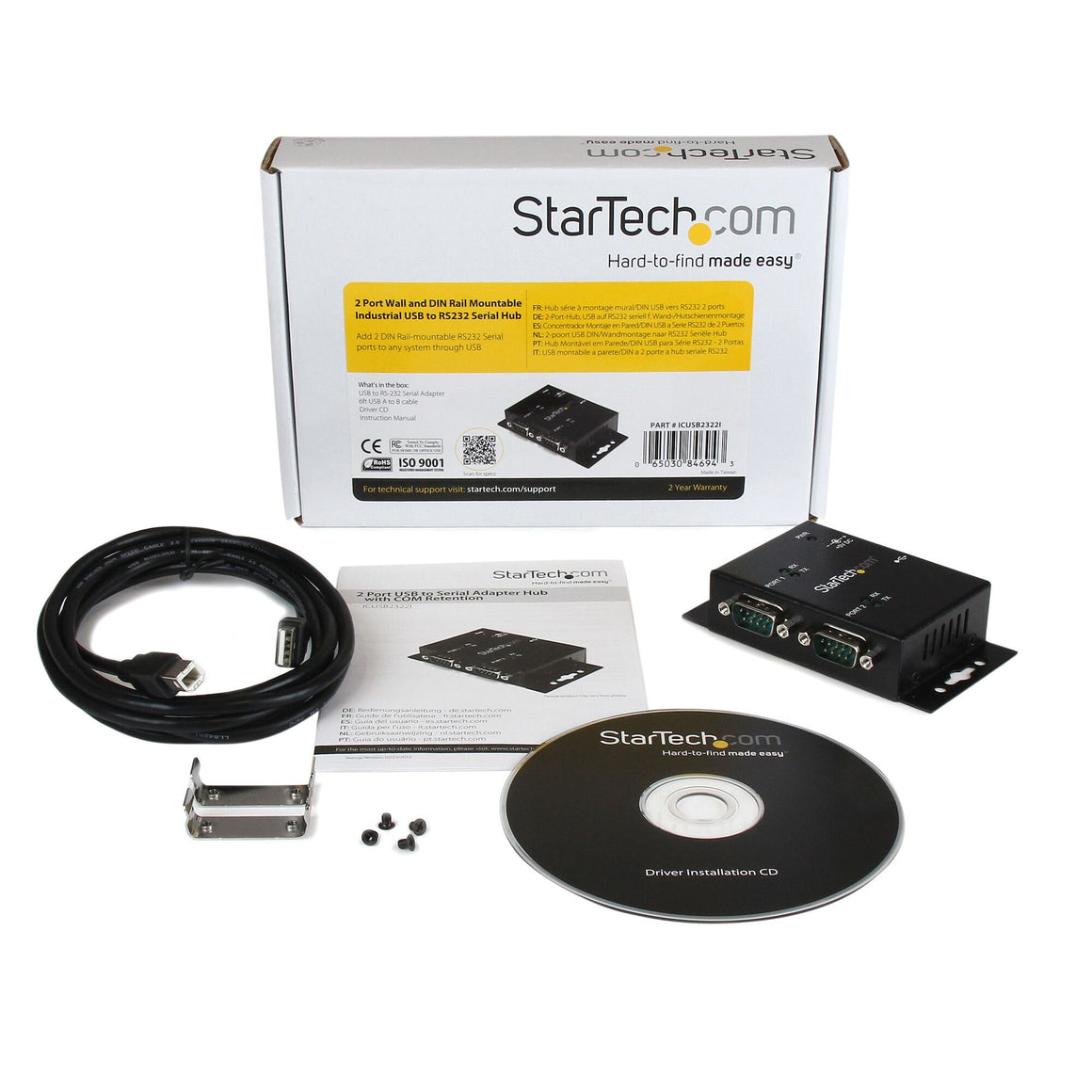 StarTech.com 2 Port Industrial Wall Mountable USB to Serial Adapter Hub with DIN Rail Clips