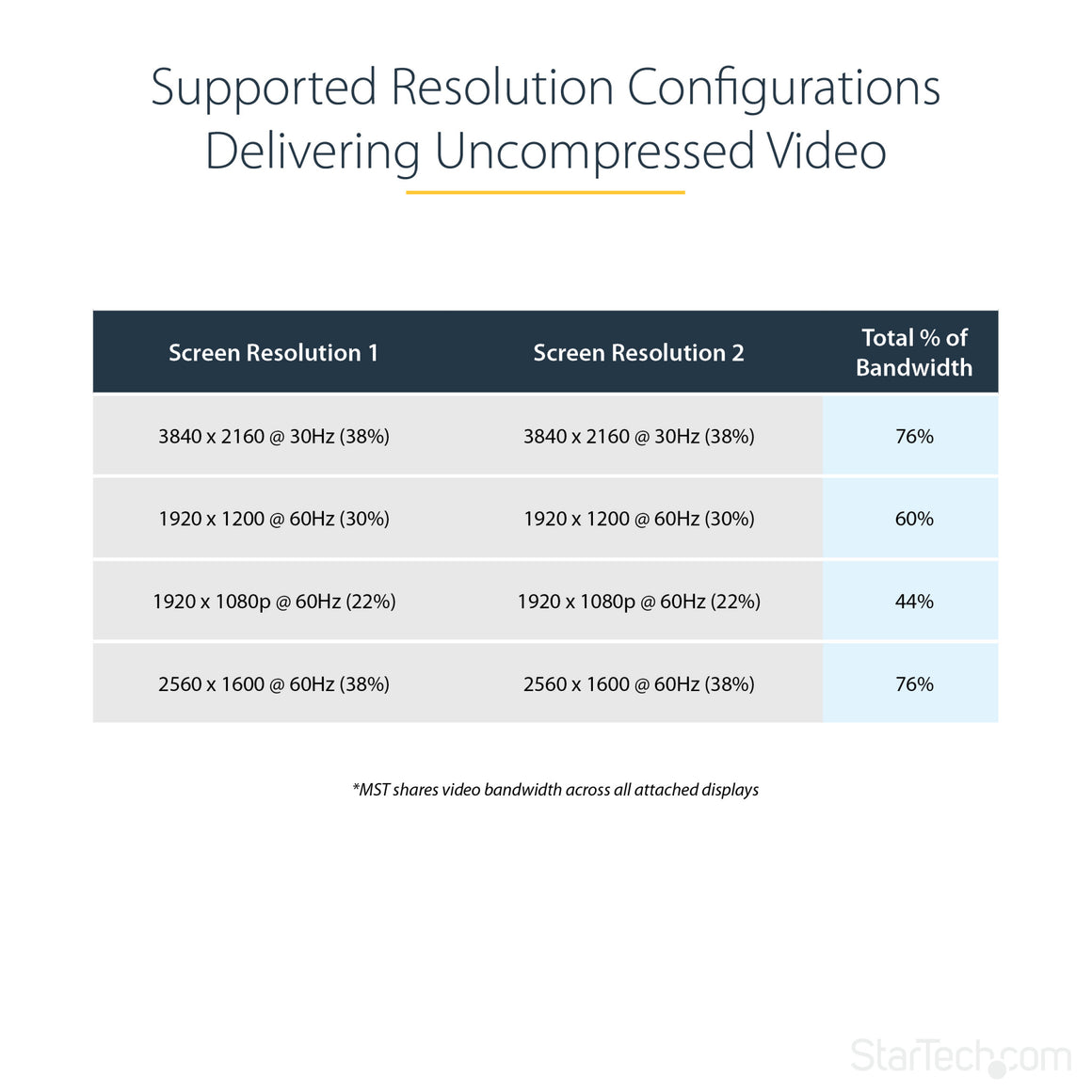 MST technology uses your existing video card to minimize the use of system resources while delivering Ultra HD 4K resolutions. This unprecedented performance makes MST perfect for high-resolution applications such as graphic design, gaming and medical imaging.