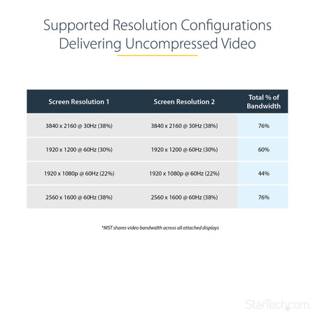 The MSTDP122DP supports plug-and-play installation for a hassle-free setup, and is backed by a StarTech.com 3-year warranty and free lifetime technical support.