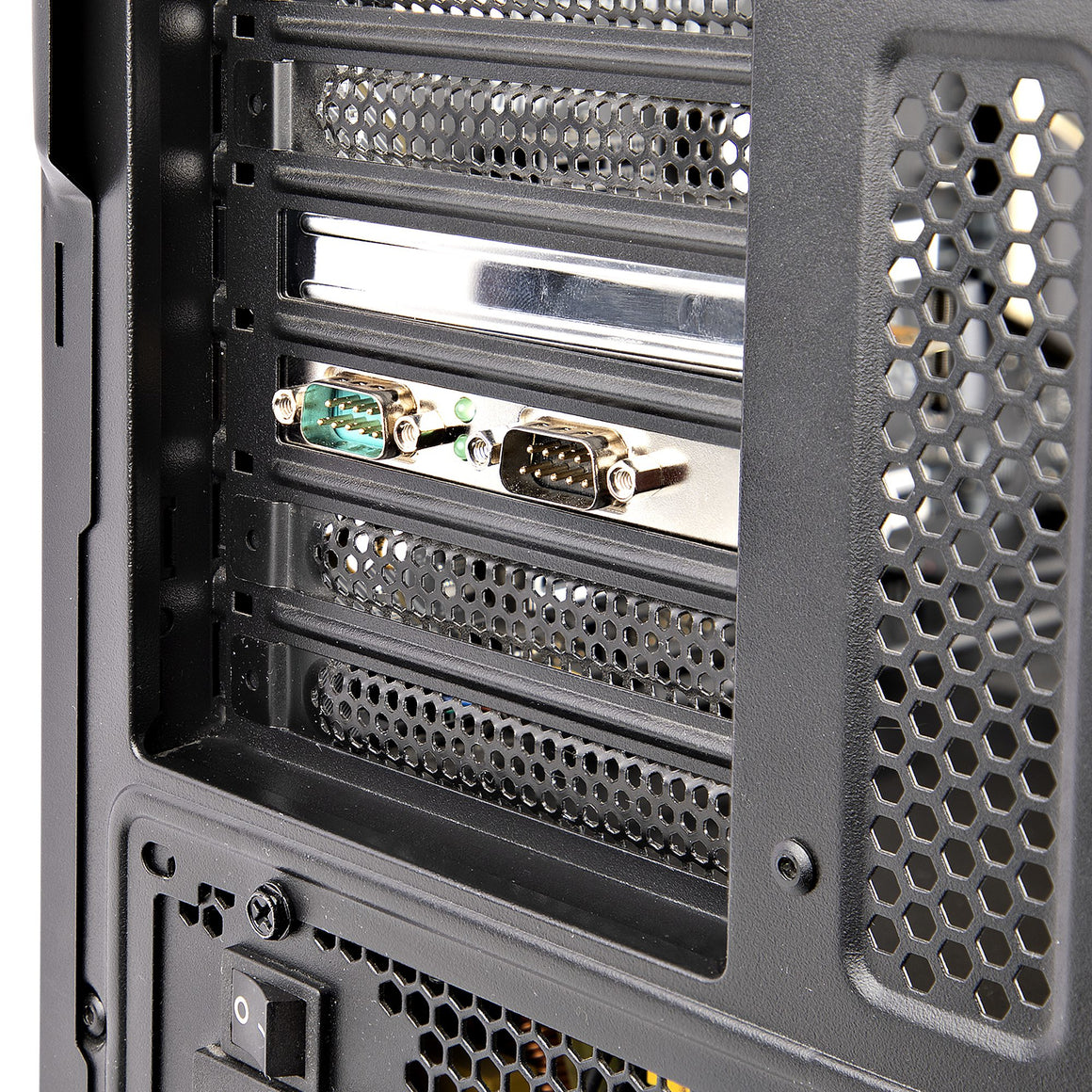 Add serial communication support to your desktop computer or Small Form Factor (SFF) system, using this two-port serial card. RS-232 (DB9) support enables control and communication with a serial peripheral device.