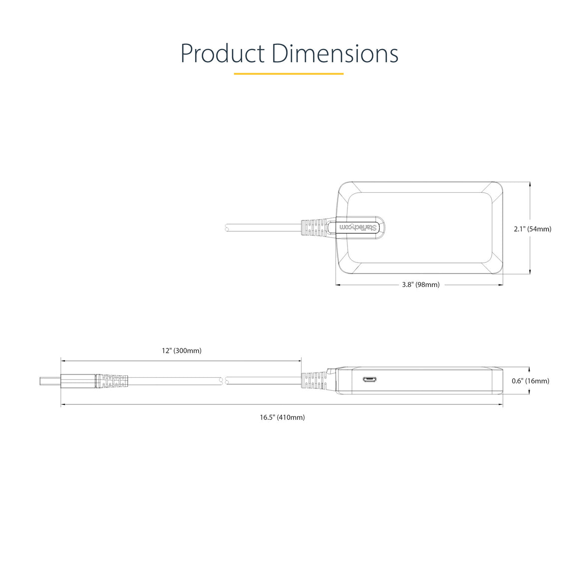 This device is OS independent, supporting all operating systems, including Windows, macOS, ChromeOS, and Android. The Hub is automatically detected, configured, and installed upon connection to a host computer, such as Apple MacBook, Lenovo X1 Carbon, and Dell XPS. The extra-long built-in 1ft. (30 cm) USB-A host cable enables quick and convenient setup and reduces connector strain on 2-in-1 devices, such as the Surface Pro 7 and laptops on riser stands.