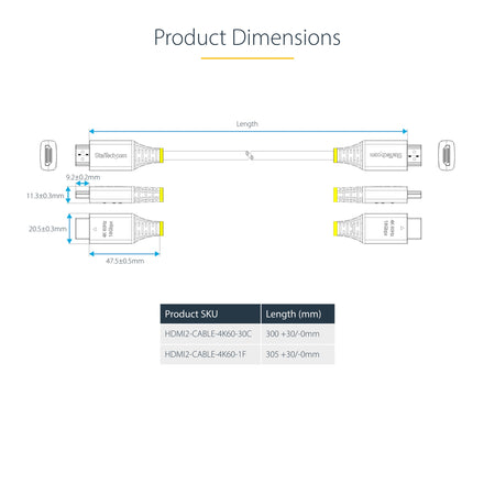 Connect to a 4K UHD TV or monitor, using this HDMI 2.0 Cable. The connector markings enable quick visual identification, distinguishing this cable from other similar-looking or unmarked HDMI cables. Eliminate guesswork and always choose the appropriate cable to support full HDMI 2.0 with Ethernet capabilities.