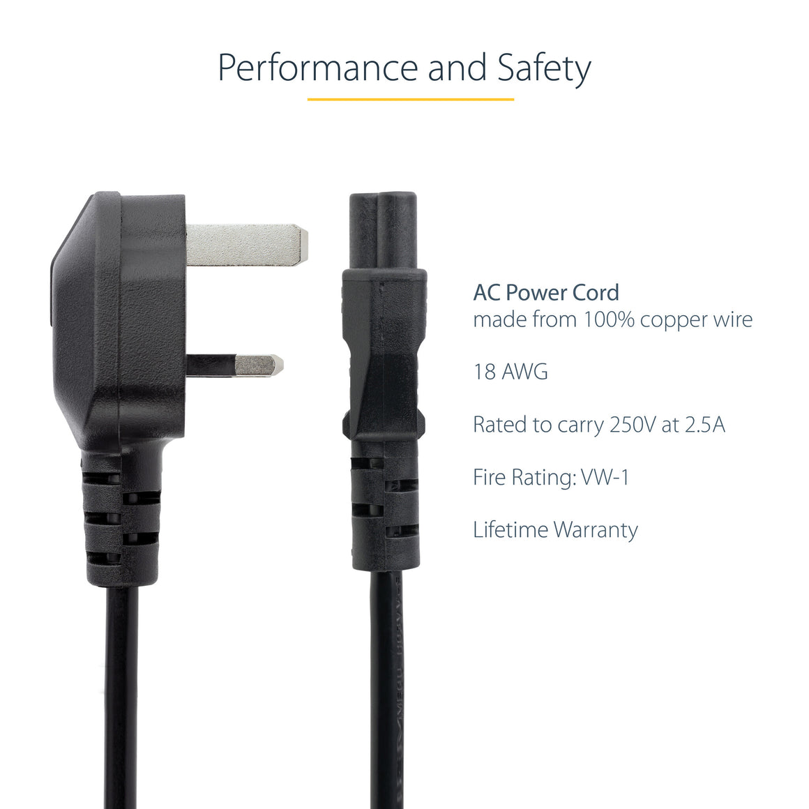 3ft (1m) UK Laptop Power Cord, BS 1363 to C5, 2.5A 250V, 18AWG