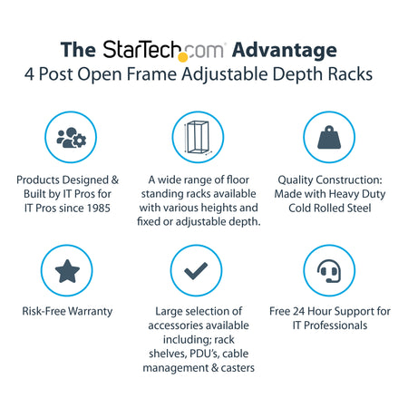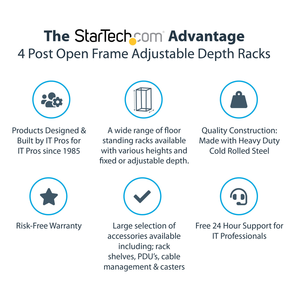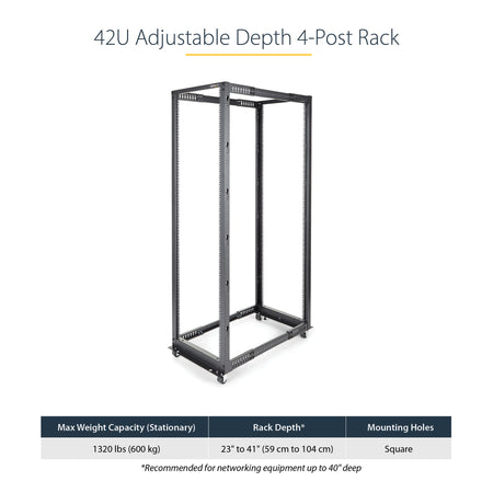 The 4POSTRACK42 42U Server Rack lets you store your servers, network and telecommunications equipment in a sturdy, adjustable depth open-frame rack.