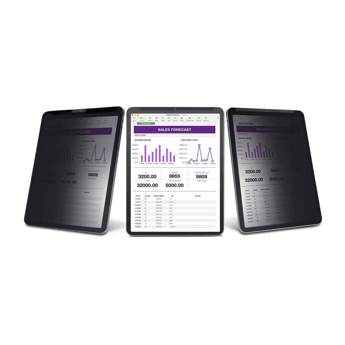 This 11-inch iPad Pro Privacy Screen smoothly transitions from a clear view to an obscured screen beyond the intended viewing angle, significantly enhancing visual privacy in office or public environments. The anti-glare matte finish helps to reduce reflections in glare-prone environments and provides additional screen protection with a scratch and fingerprint-resistant coating.