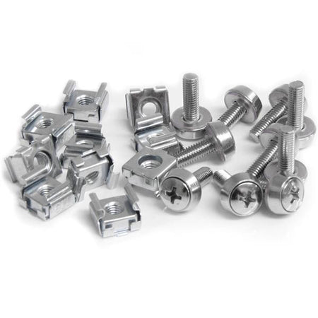 The 50-Pack of M5 Mounting Screws and Cage Nuts for Server Racks and Cabinets is ideal to have on hand for installing servers, network equipment, AV equipment and other rackmount devices securely into your storage cabinet or server rack.