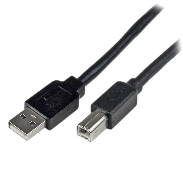 The USB2HAB65AC 65ft/20m USB A to B cable incorporates bus-powered active circuitry, which enables it to perform beyond the 5-meter limit of a standard USB cable.
