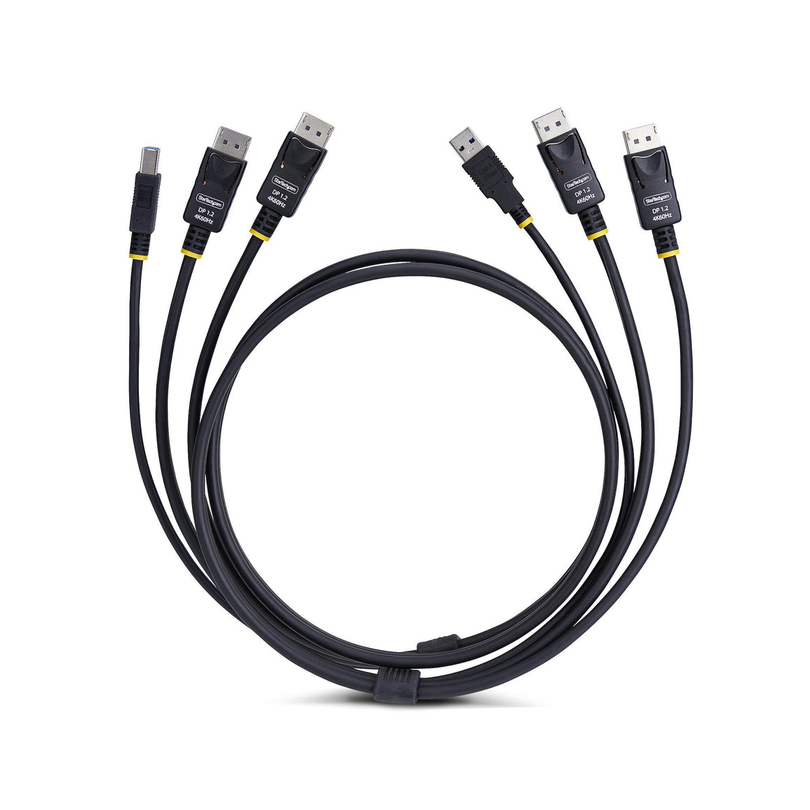 KVM cable provides a reliable connection between a computer and a dual-monitor DisplayPort KVM switch with USB 5Gbps support.