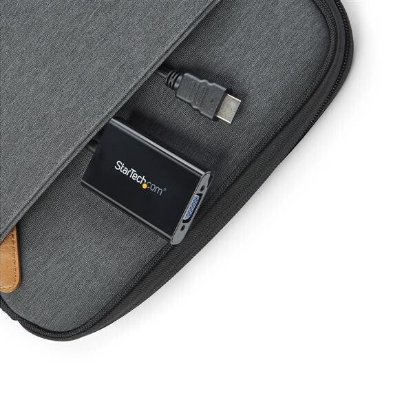 The HD2VGAA2 HDMI to VGA Adapter Cable enables you to connect an HDMI output device, such as a laptop video output or digital media extender to a VGA display device (monitor, projector) by converting the HDMI video signal from the output device into a VGA output and separate 2-channel analog audio. The HDMI to VGA adapter is intended for displaying user generated content such as presentations, documents, and work sheets onto a VGA projector or monitor. The adapter can also extend your computer's desktop to double your workspace and increase productivity.