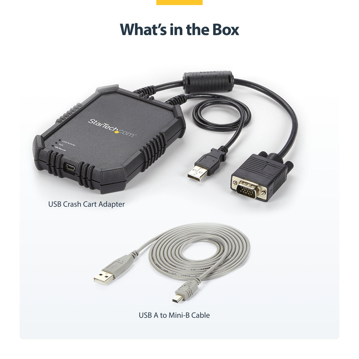 This rugged and portable USB crash cart adapter lets you turn your laptop into a portable console for accessing servers, desktops and laptops, as well as ATMs, kiosks or any computing device that features both VGA and USB ports.