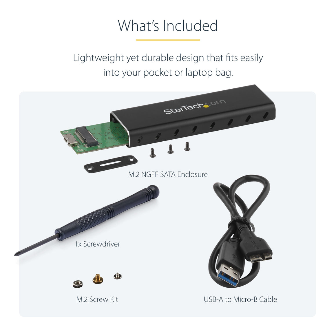 The SM2NGFFMBU33 external USB 3.0 to M.2 (NGFF) enclosure turns your SATA M.2 solid state drive into a portable, high speed USB 3.0 drive.