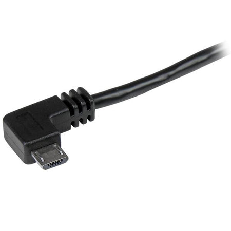 This Micro-USB cable features two right-angled connectors that let you connect to hard-to-reach ports and also help prevent cable and port damage. The cable is great for charging your mobile devices in a car, or for connecting to peripherals that may be difficult to connect to when using a straight connection.