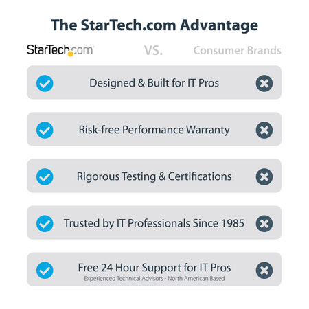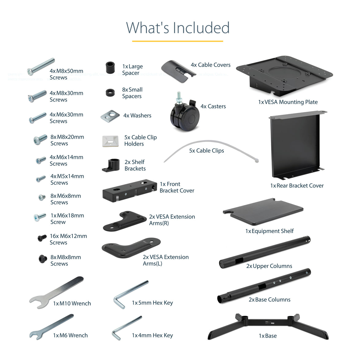 The MBLTVSTNDEC mobile TV cart stand is backed by a StarTech.com 2-year warranty and free lifetime technical support.